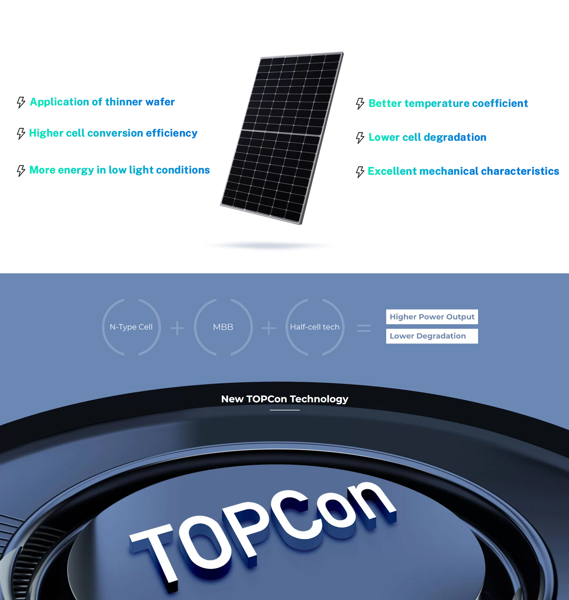 Le matériau de type N ne présente aucun risque LID/LeTID et permet de rendre les modules plus fiables, plus polyvalents, plus efficaces, avec un coefficient de température plus faible et une durée de vie plus longue.